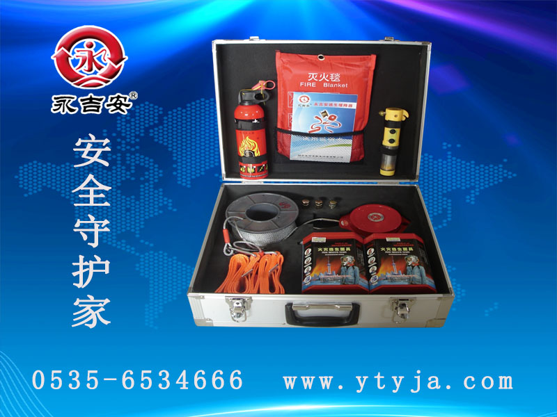 應(yīng)急百寶箱集逃生緩降器,消防防毒面具,滅火器,滅火毯,應(yīng)急手電為一體式包裝的逃生專用產(chǎn)品。